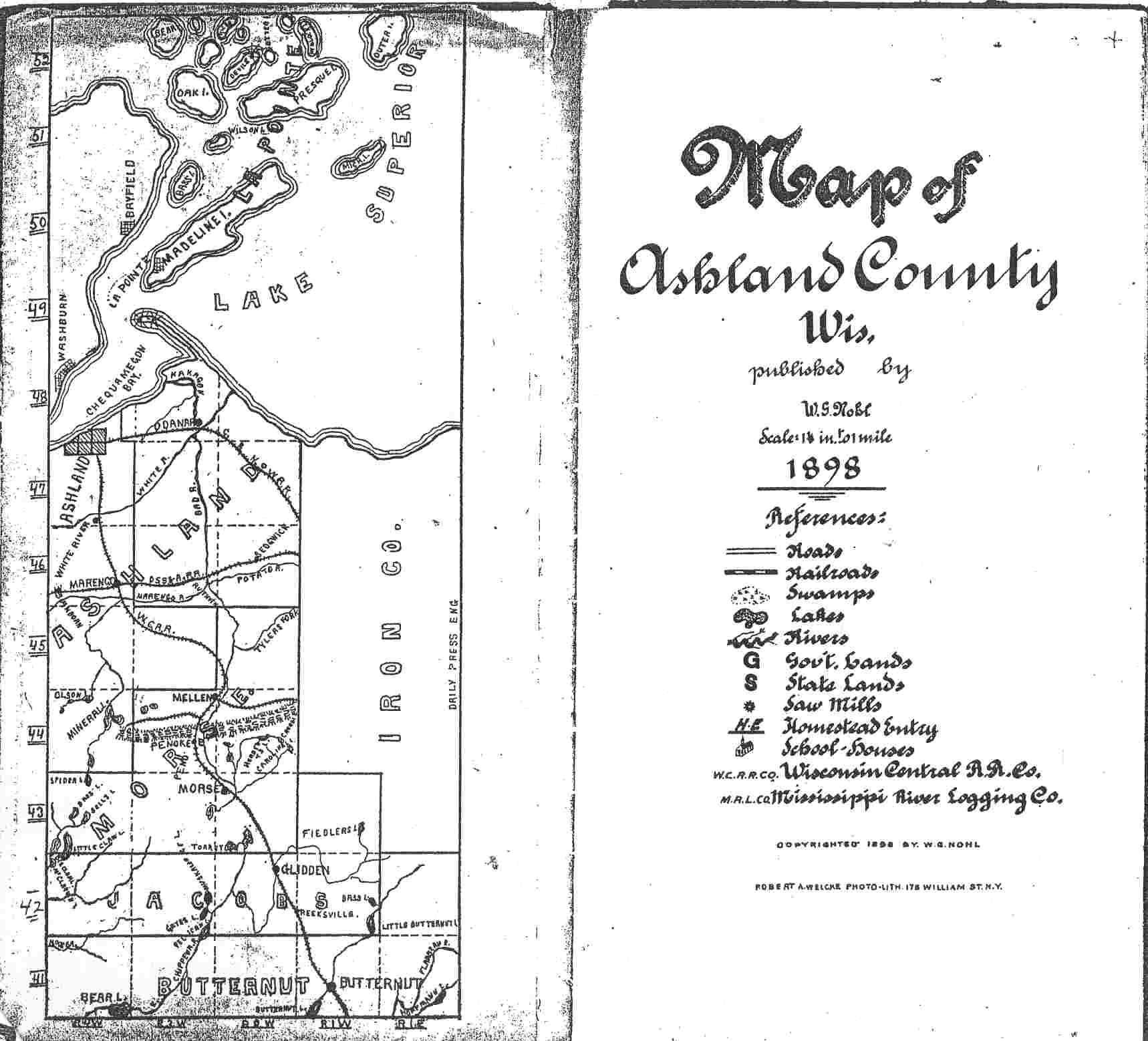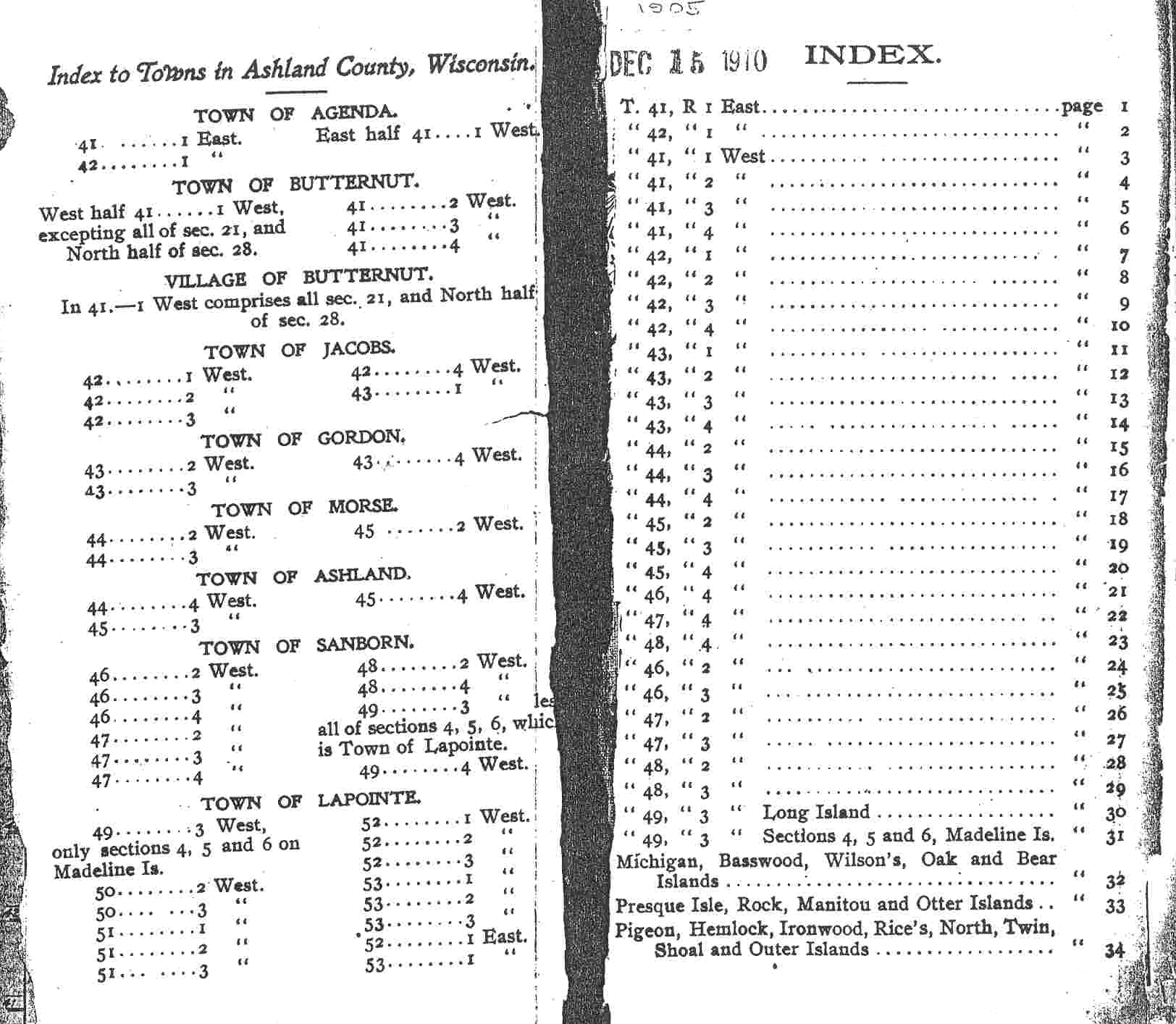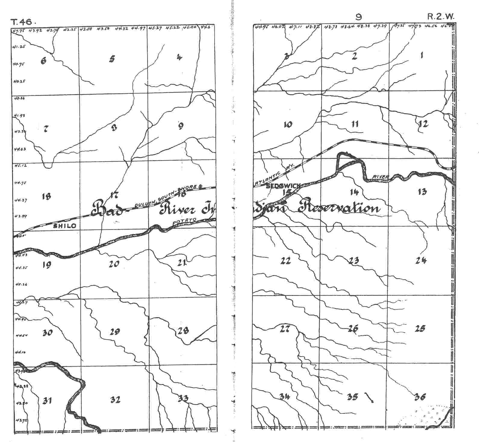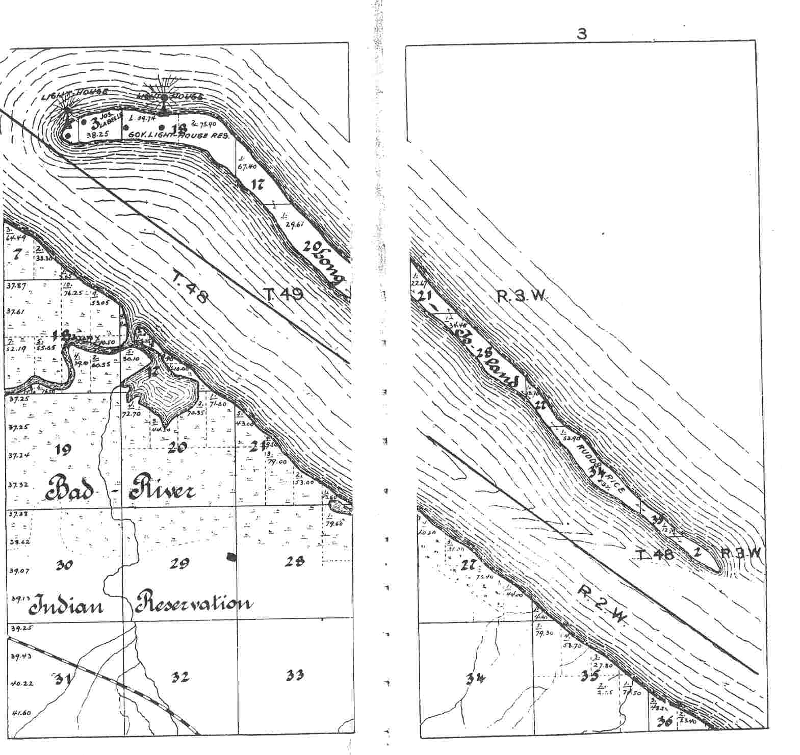 Township, Range Map of Ashland County at Wisconsin Public Land Survey