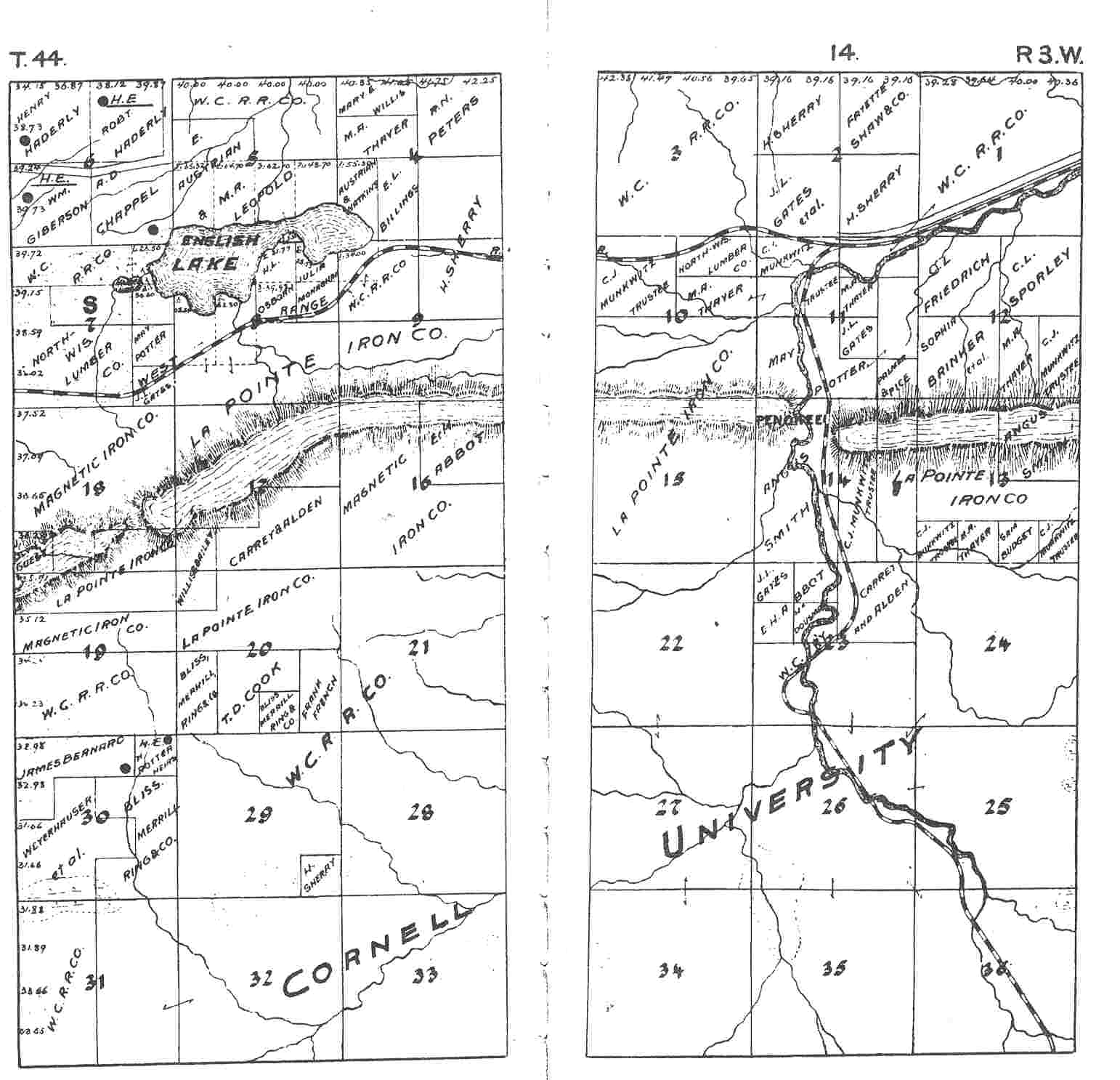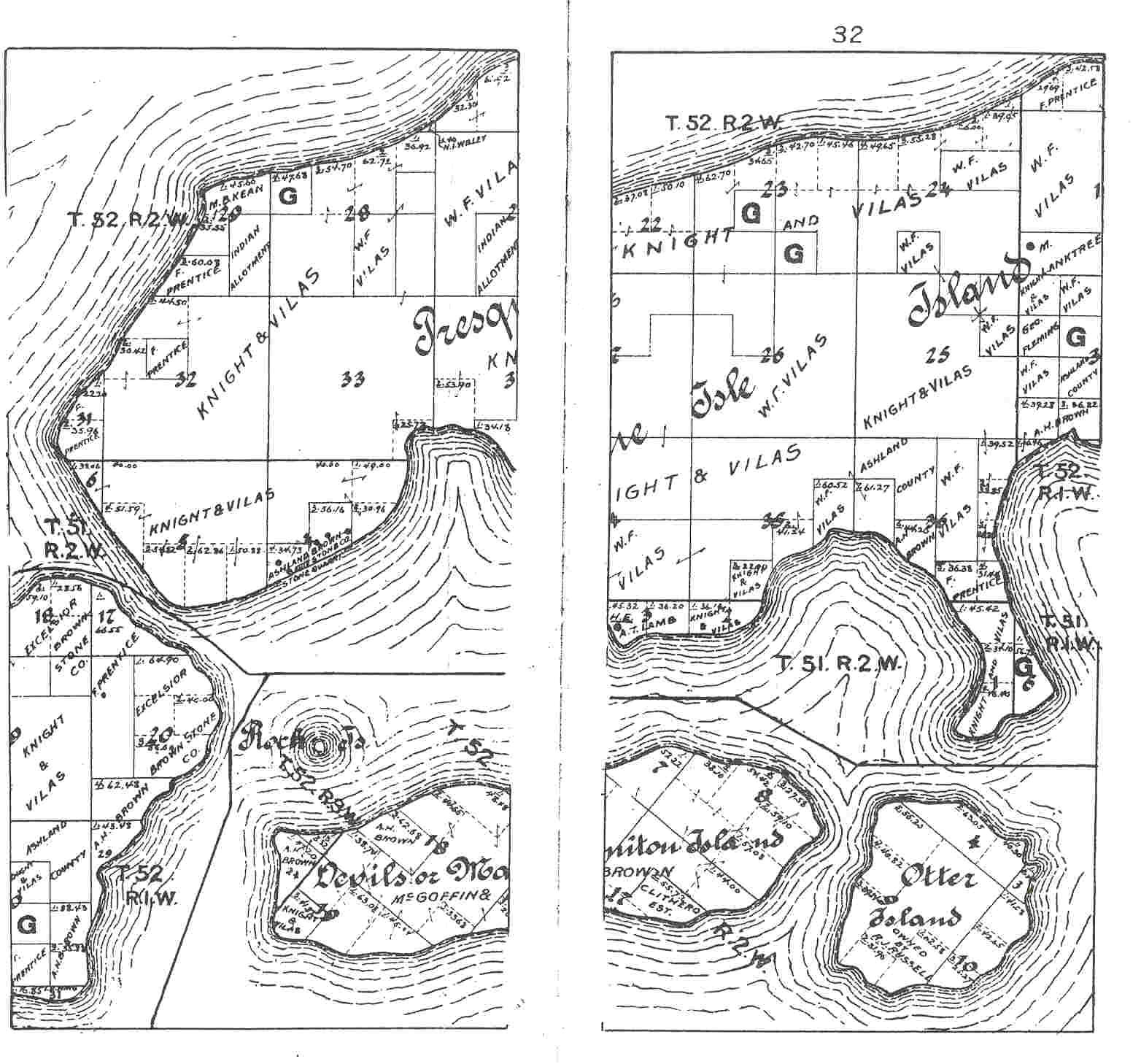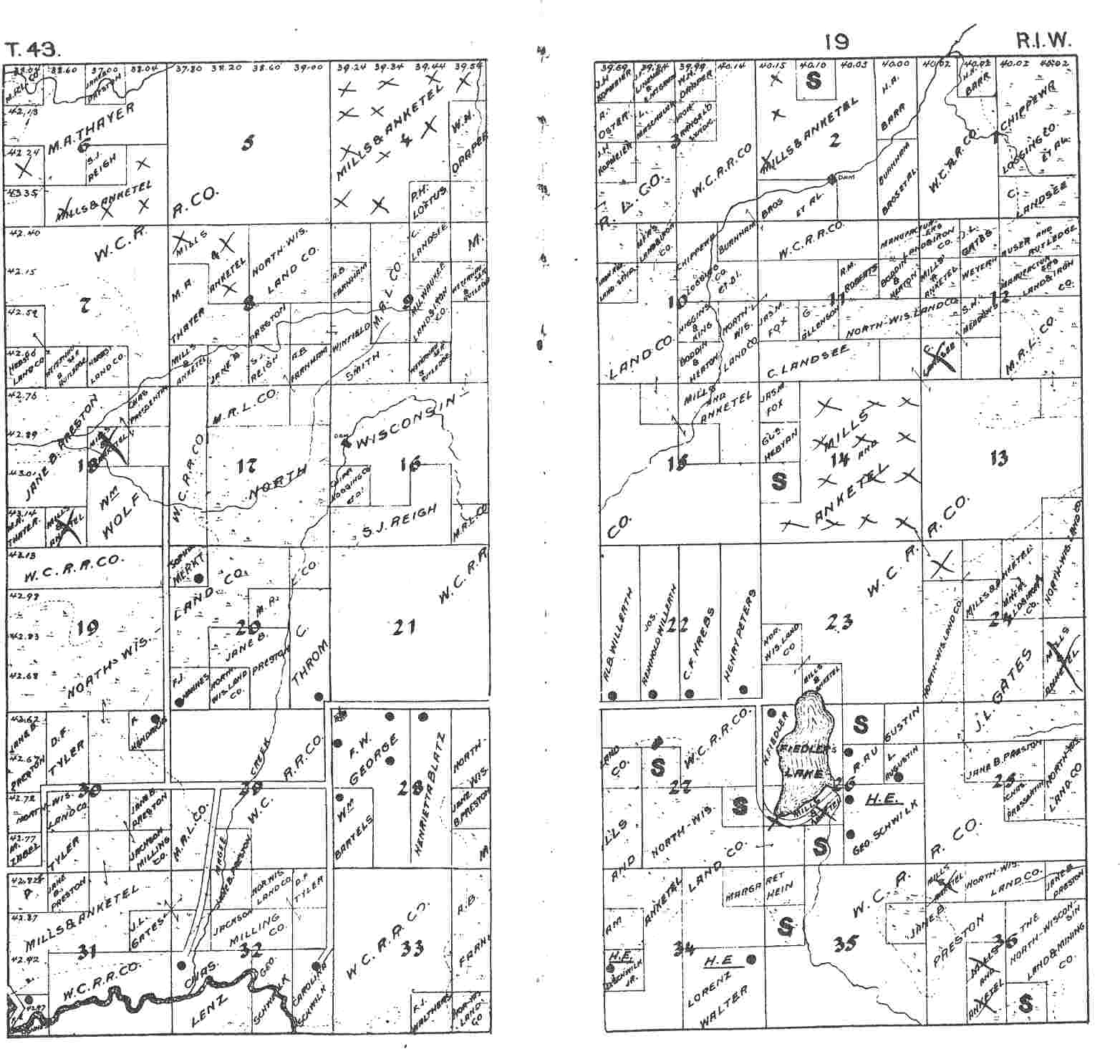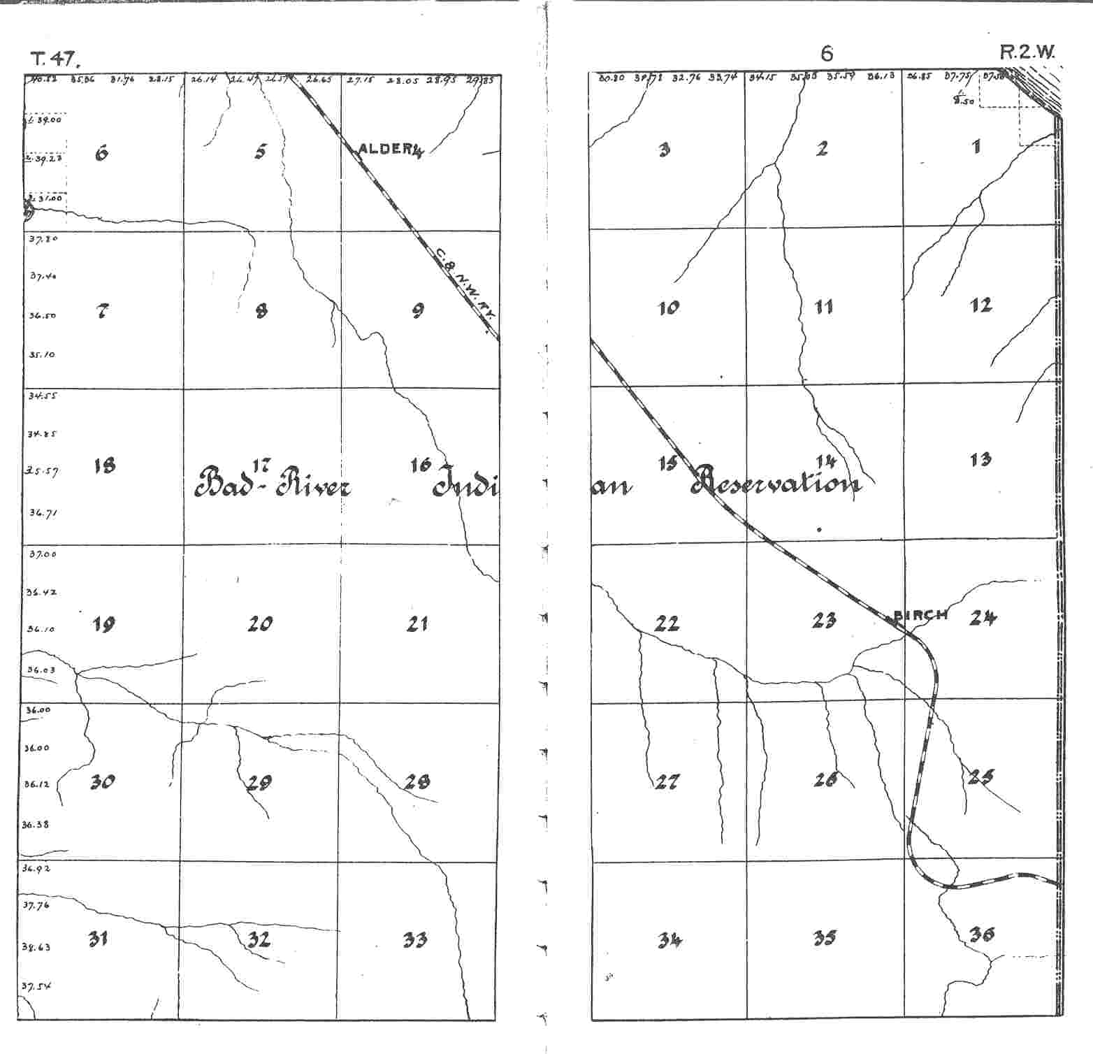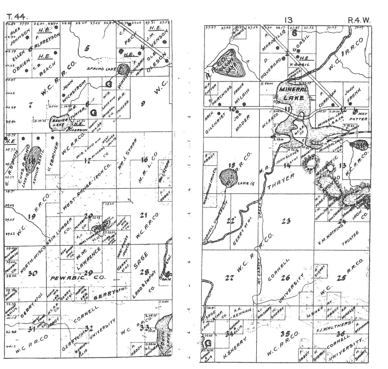 Township, Range Map of Ashland County at Wisconsin Public Land Survey