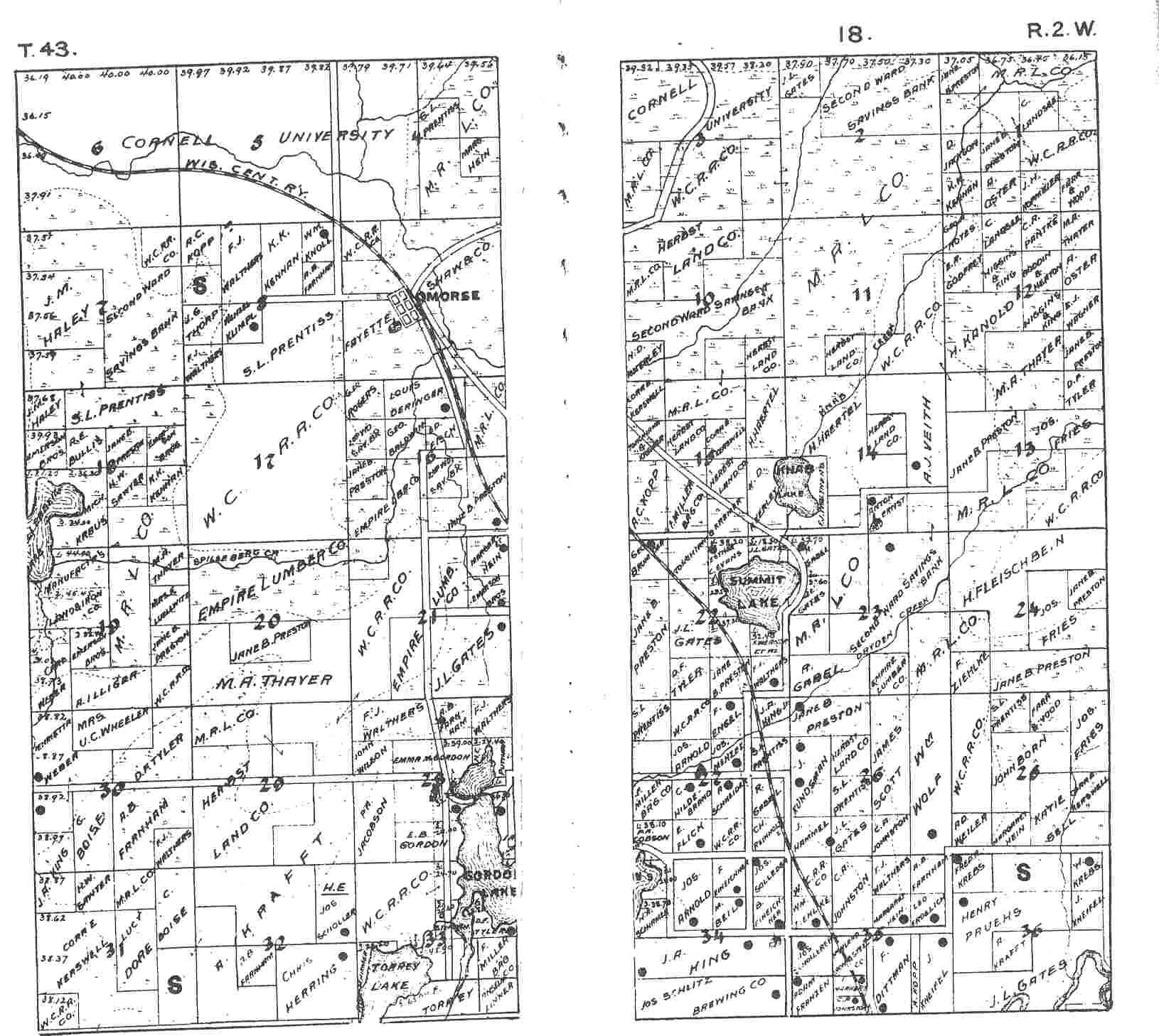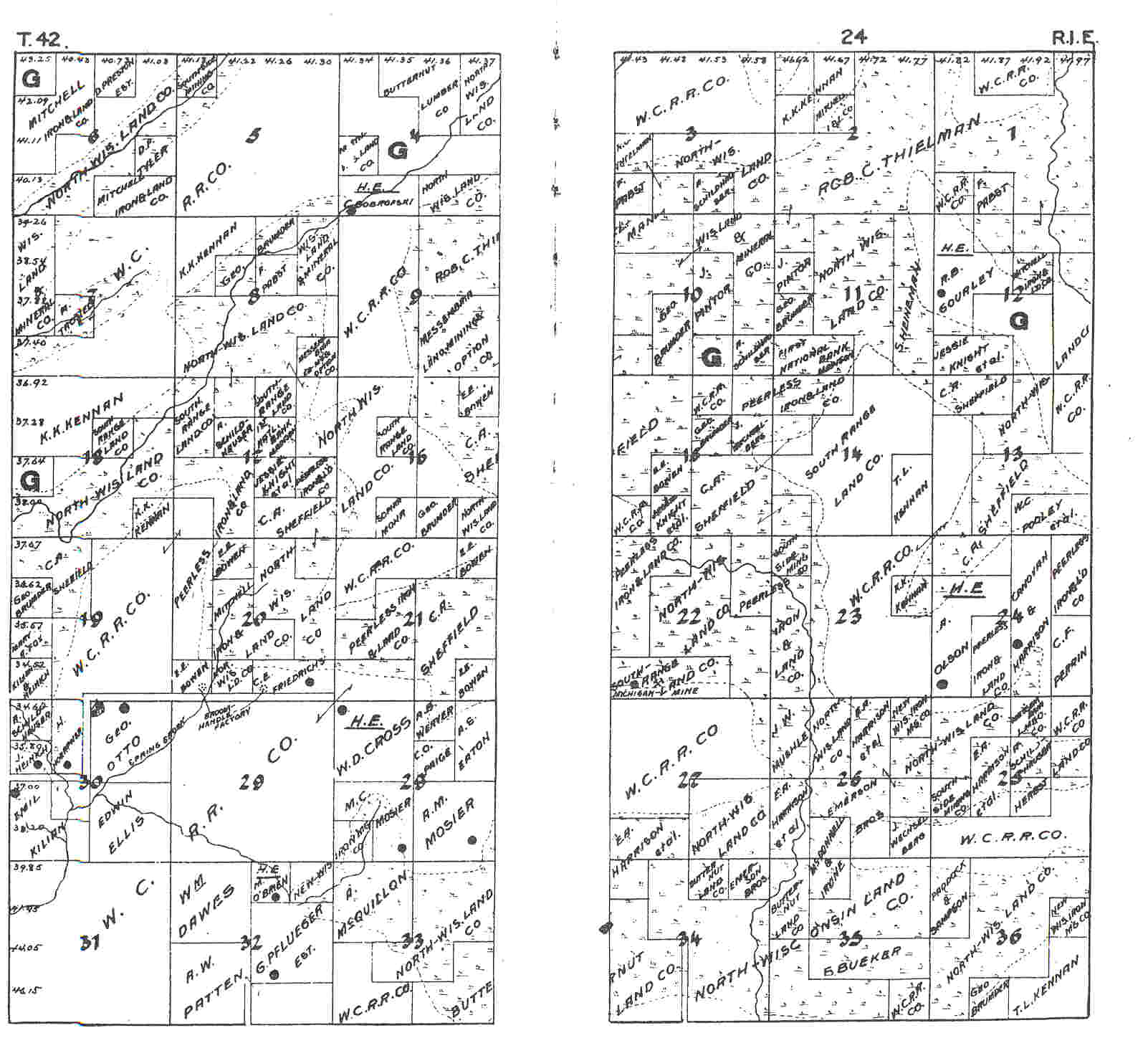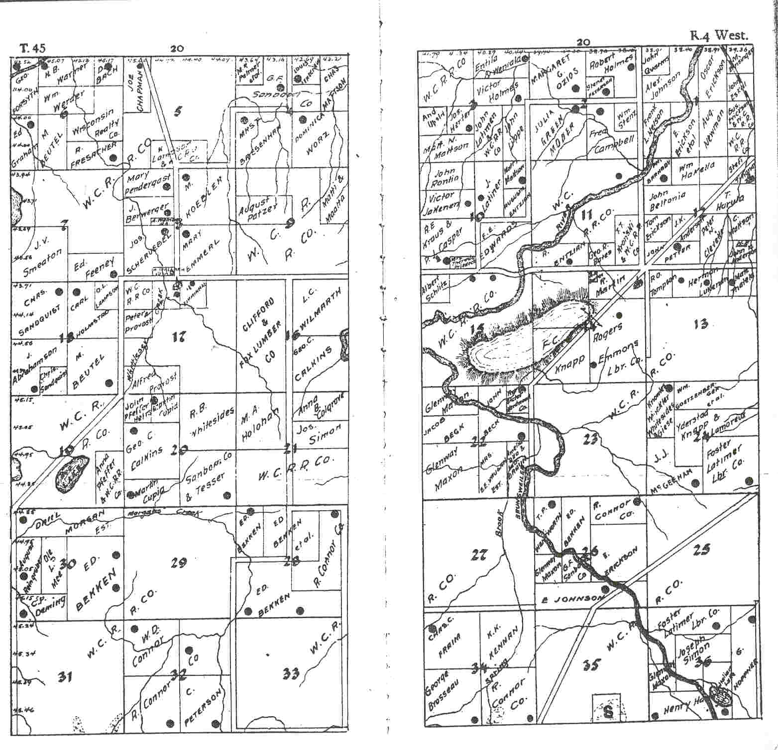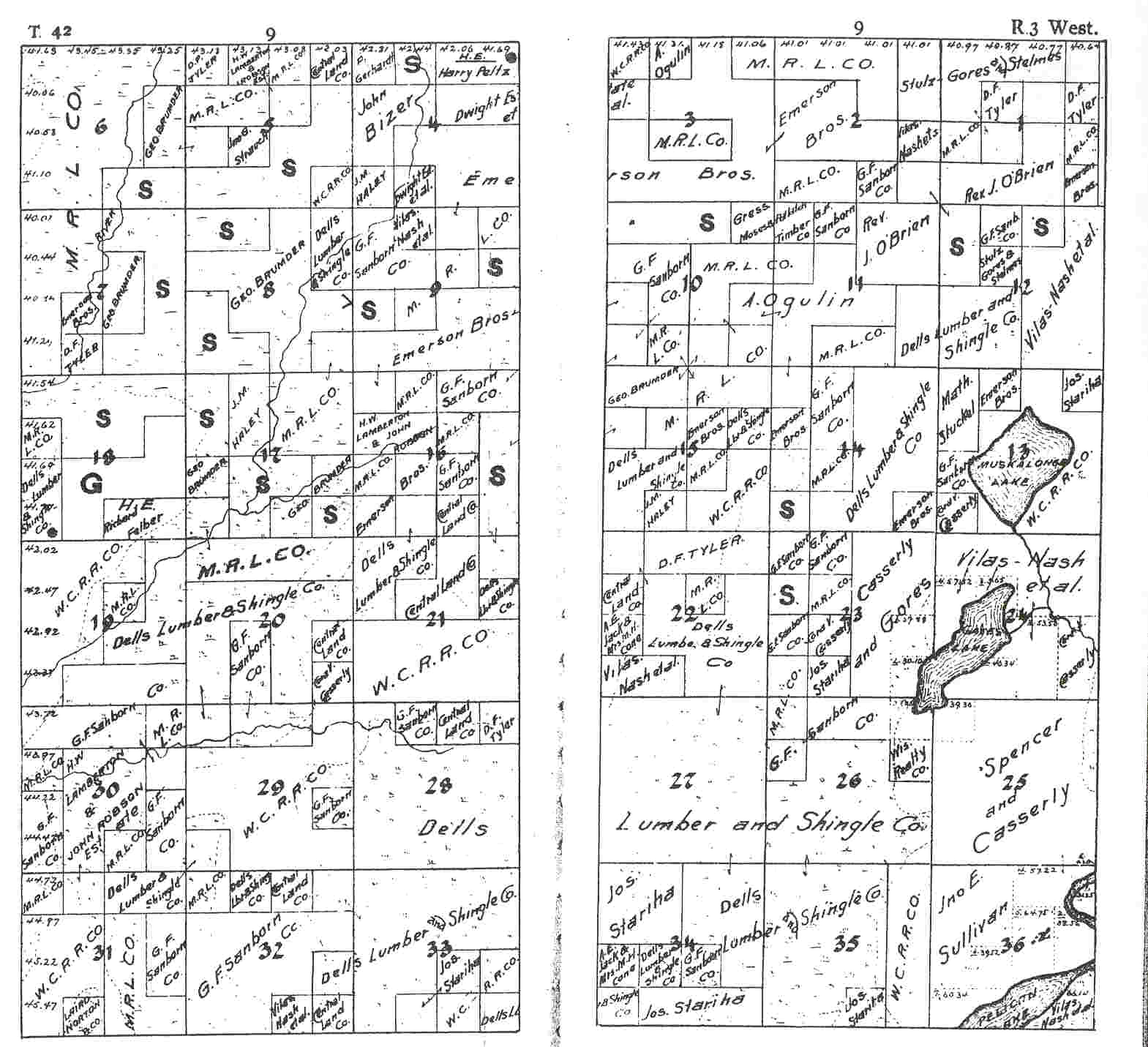 Township, Range Map of Ashland County at Wisconsin Public Land Survey