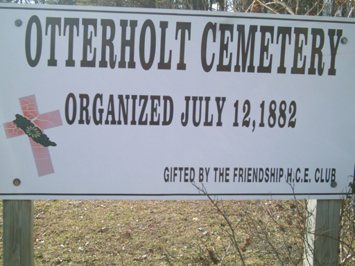 Otterholt Cemetery is located in Section 28 of Prairie Lake Township. This reading does designate rows, and is separated into 2 sections -- section 1 has a few new stones. They lie in the southwestern corner of the section next to the service road. Section 2 was recorded in rows running north to south, beginning at the western-most edge. Surnames with a question mark (?) and those in parenthesis (SMITH) mean that there was no surname found on the stone. Where the maiden name of a woman was included on the stone, it is listed with her given name and is capitalized.