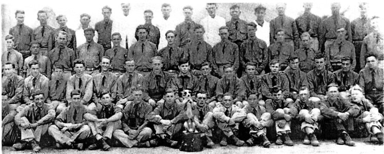 MEMBERS Reading from left to right: FIRST ROW: Coland C. McDONALD, Otto J. KAUFMANN, Jack RICHARDSON, Anthony P. MOTIL, Frank W. WASHNEISKI, Jr., Sylvester F. WIMMER, Charles H. TROTT, Reuben M. UNTINEN, John W. DOYLE, Douglas E. GARREAU, Ralph R. LAUDAHL, Gordon A. TEIGE, Iver J. KNUTSON. SECOND ROW: Edward J. VUKADIN, James P. O'BRIEN, John H. McGARRY, Louis A. BOLKA, Benjamin P. STENER, Merton C. McGILTON, Calvin H. VANDERHYDE, Joseph B. O'BRIEN, William J. WHEELER, Raymond L. ANDERSON, Delbert N. STUMBAUGH, Alfred O. HOFF, Floyd ALLEN, Angelo P. PRARIZZI, Anton J. ORSONI, George P. PLUSKOTA. THIRD ROW: Ervin O. NORDIN, Paul J. MAZUR, Adam B. WOITKIELEVICZ, George E. MARINCEL, Edward S. OSTROWSKI, Mike BUBASH, Robert F. HAIDINGER, Michael LATVIS, Richard E. NORDQUIST, Ernest STUDDEN, Charles H. EVANS, John O. KENTALA, Elder A. KUBLEY, J. Stanley KRANTZ. FOURTH ROW: Woodrow W. CARLSON, Romy J. MOURS, John WANNENMACHER, Harold E. GLAMPE, Bernard M. HAMMAR, Myron P. NEUMANN, Philip E. RILEY, Robert W. POLGLASE, Lyle H. McCLUSKEY, Harvey F. CHAPIN, Bert L. HOSKINS, John A. JARCHOW, Harold J. LOCK, Alfred O. CHAPIN, Kalervo A. WUORISALO, Joseph S. BRANDIS, Marvin S. CARLSON. MEMBERS NOT IN PICTURE: Orval F. ANDERSON, Robert A. BOWER, James C. CONKLIN, kWalter R. CONSIE, Robert H. FRANK, Clyde C. HALVERSON, John KAAN, John J. KANE, Rudolph J. LAMPI, Walter J. MEIVES, Leo J. POTTER, Edward G. RHIENSCHMIDT, Raymond F. ROHLEDER, Floyd E. SANDQUIST, melvin D. THIERER, Marvin W. TOPPING, Frank S. TRACZYK, Leondard TURCZYNSKI, John B. VAN BECK, Joe W. VLASATY, James A. WELLS, Roy H. WOLFE. History On June 16, 1935, two Companies were formed from Company 1606, at Camp Brinks, a tent camp seventeen miles west of Washburn, Wisconsin. The new Company was designated company 3653, and I. G. Drischel, a Captain of the Infantry Reserve, was put in command. August 1 the new Company moved to Camp Horseshoe, another tent camp located in the Moquah Unit of the Chequamegon National Forest, twenty-five miles west of Ashland, Wisconsin. The planting of Jack Pine and Norway Pine seedlings, fire hazard reduction, scalping or preparation for future planting, were the chief projects at the new camp. During the last week in September an electrical power plant was installed, the entire camp wired, wooden floors installed in the tents, and a thirty-foot water tank erected. The educational and recreational program was supervised by Charles Wierach, Educational Advisor. The Company won the pennant for baseball in the Seventhy Sub-District in 1935. The Company moved to Camp Taylor Lake, near Grand View, Wisconsin, November 5, 1935, for the winter months. This was their first camp with barracks, and as it was a new camp, much work was required to clear and level the camp grounds. Captain Drischel was transferred and R. N. Valentine, a First Lieutenant of the Infantry Reserve, took command of the Company November 22, 1935. Timber stand improvement, lake surveys, roadside clean-up, and fire hazard reduction were the main projects at Camp Taylor Lake. Orders came on May 1, 1936, to move to Camp Brinks and the main body of the Company moved May 17. Field planting of pine seedlings was the first project to receive attention. Other field activities were road maintenance, fire hazard reduction, improvement of recreational centers, and fire fighting. During the summer months there were several severe forest fires in the region surrounding Camp Brinks. The most destructive of these fires was the Moquah fire that started near Iron River and spread rapidly into the Moquah Unit of the Chequamegon National Forest in which the camp is located. Acts of heroism and endurance were so common during the various fires that they were passed over as merely a part of the day's work and were considered as such by the men. November 4, 1936, the Company moved to Camp Cable, one of the most modern camps int he district, located ten miles east of Cable, Wisconsin. The major projects at Camp Cable were: Timber stand improvement, fire hazard reduction, lake surveys, the establishment of several picnic and camp grounds, pre-cultural and post-cultural surveys. Due to the modern equipment, class rooms and other factors that the Company had not enjoyed in the past, a better educational program was organized and carried on at Camp Cable, than had previously been possible. May 3, 1937, the Company moved to Camp Brinks for the third time, and work was begun immediately planting pine seedlings. Other activities were timber stand improvement, fire hazard reduction, fire fighting, road maintenance, and park improvement. Lieut. Ralph N. Valentine, Company Commander, resigned and Lieut. H. W. Bieritz, of the Signal Reserve, took command May 27, 1937. The present personnel of the Company includes Lieut. H. W. Bieritz, Commanding Officer; Lieut. Thomas Maquire, of the Signal Reserve, Second in Command; Doctor Raymond B. T. Sweany, Company Physician; J. P. Orcutt, Camp Superintendent, and Paul L. Daugherty, Educational Adviser. |