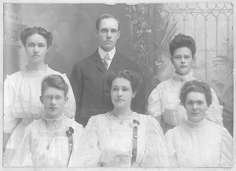 Pardeeville Graded School Class of 1903: Emery Kohler, Mary Garner, Prof. F.I. Doudna, Mabel Kidny, Harry Tullis, Inez Merrill.