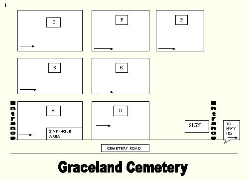 - Condition: Looks as though someone mows it now and then, the cemetery is in poor shape with a few sink holes. In what I call the A Section, there is a huge area that is sunken about 6 feet deep, with many headstones that have dropped into it and all are askew. I could not get down into it to read some of the stones for fear of falling into a deep crevice and dissappearing. I did manage to read as many as I could see from above. This is such a dissappointment to see how they take care of our past towns people. Many tipped over headstones in Section D.