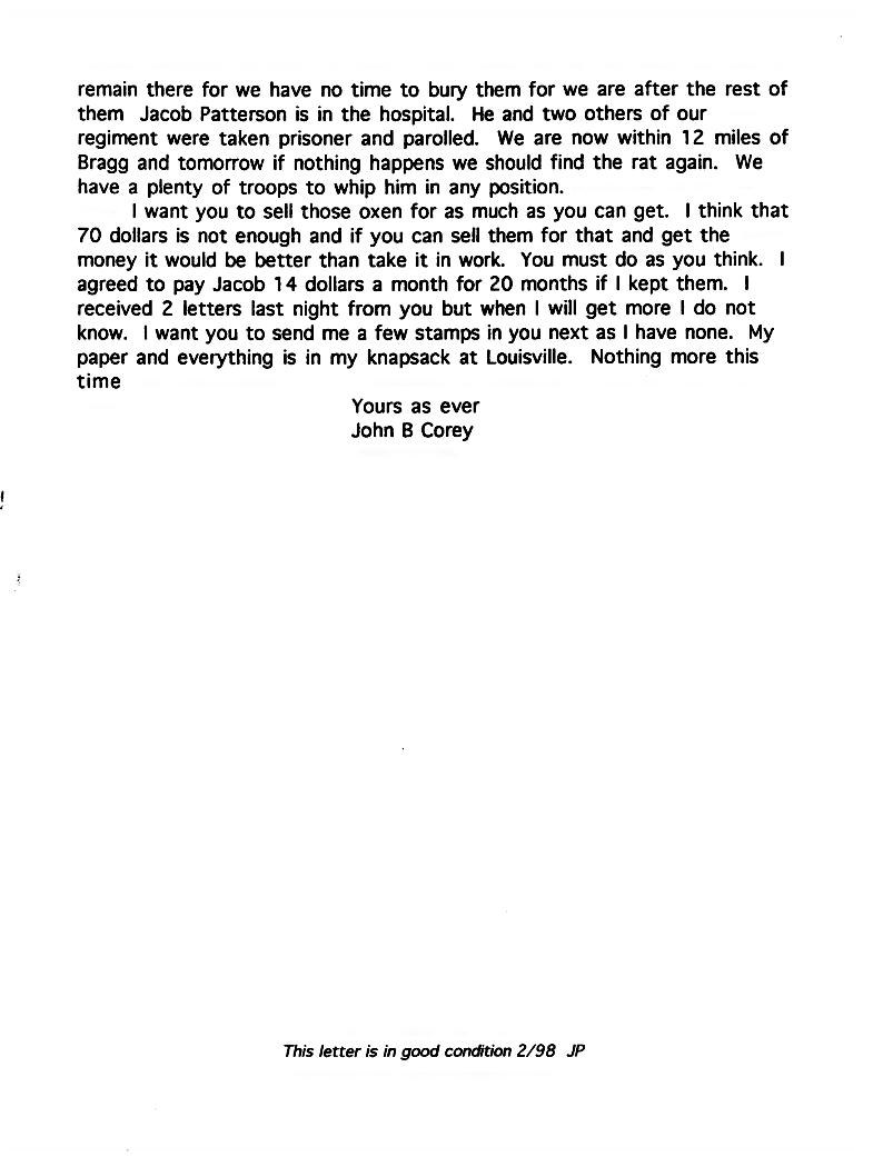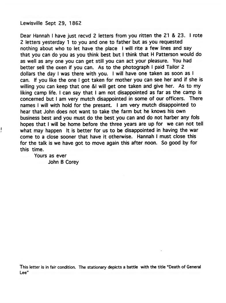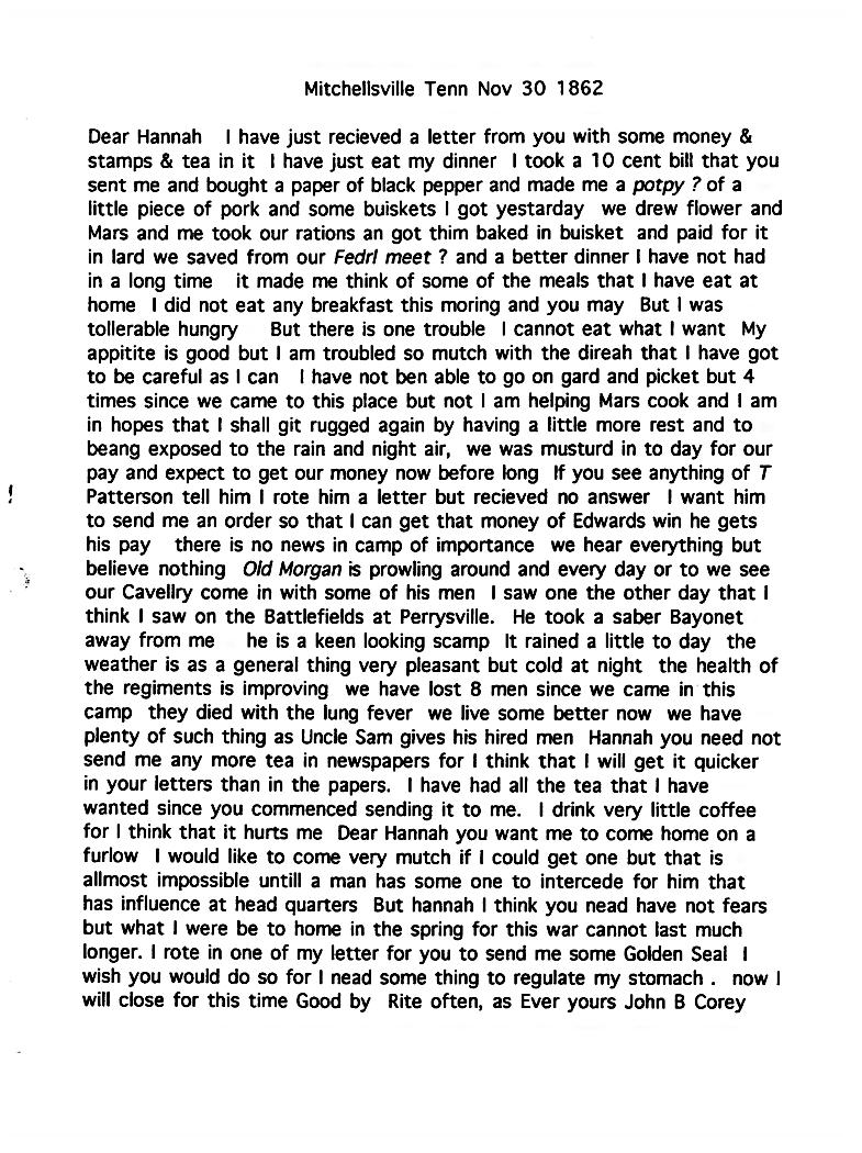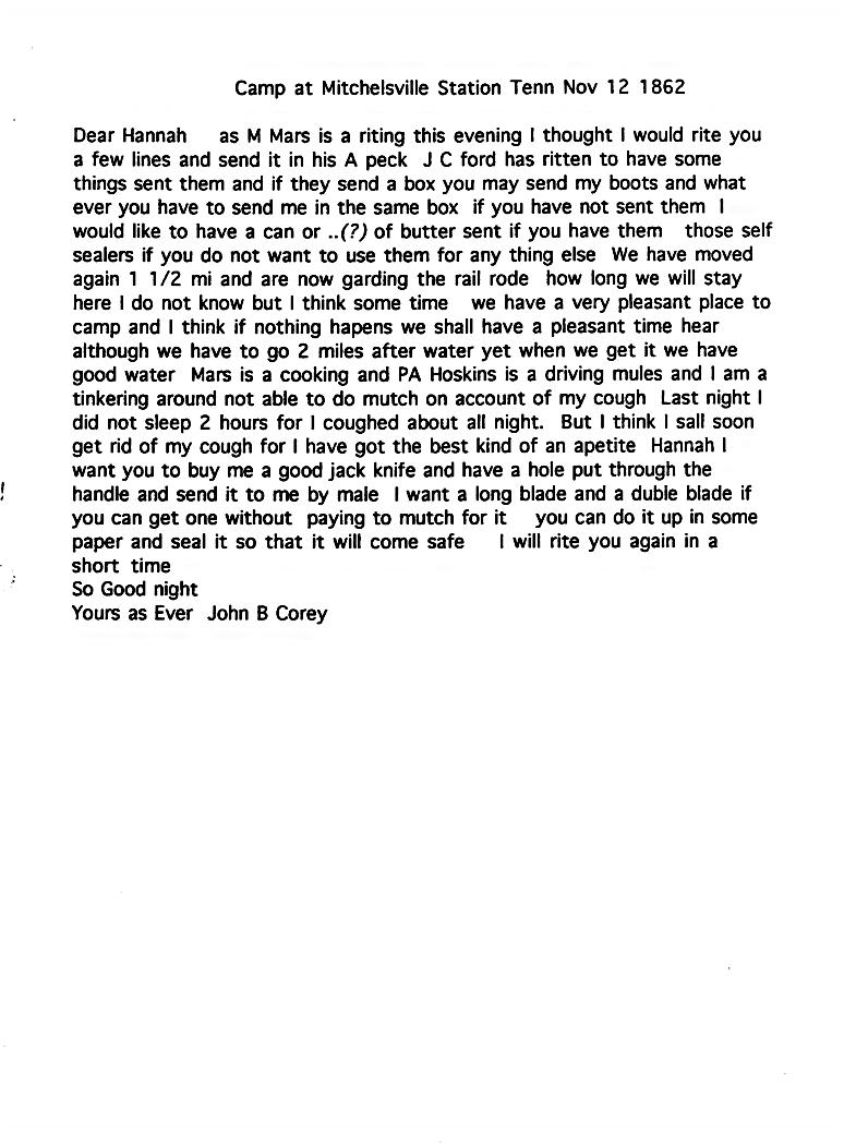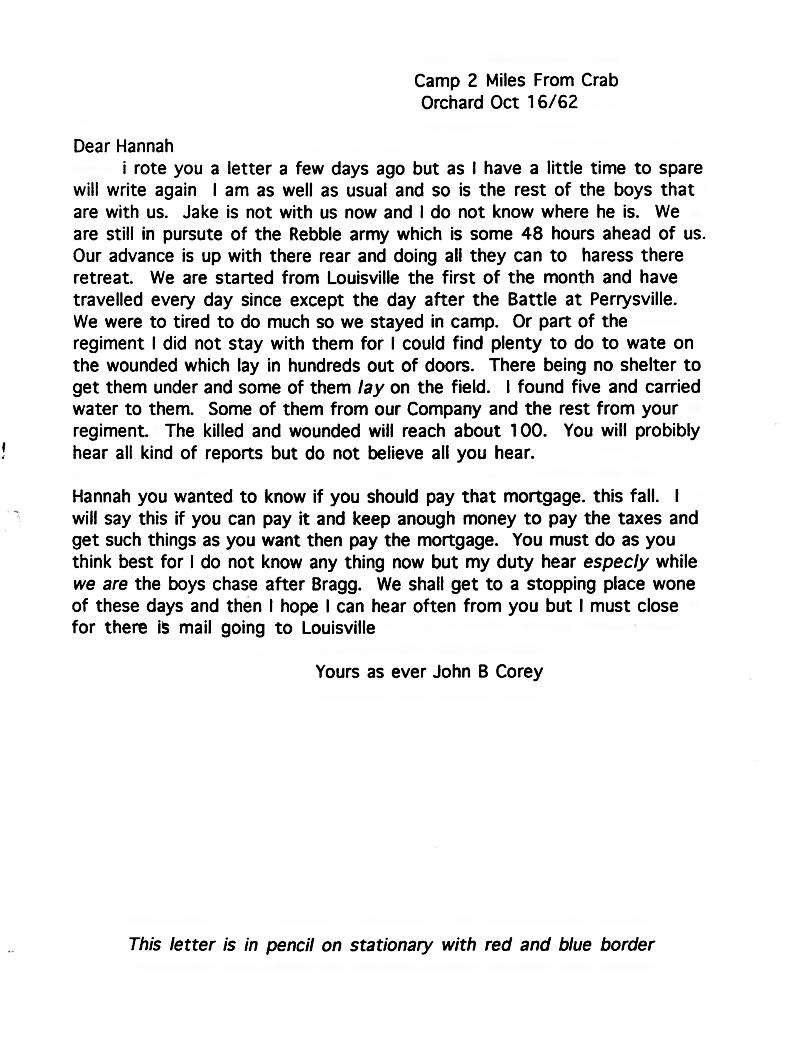JOHN BURHYTE COREY LETTERS FROM THE CIVIL WAR |
