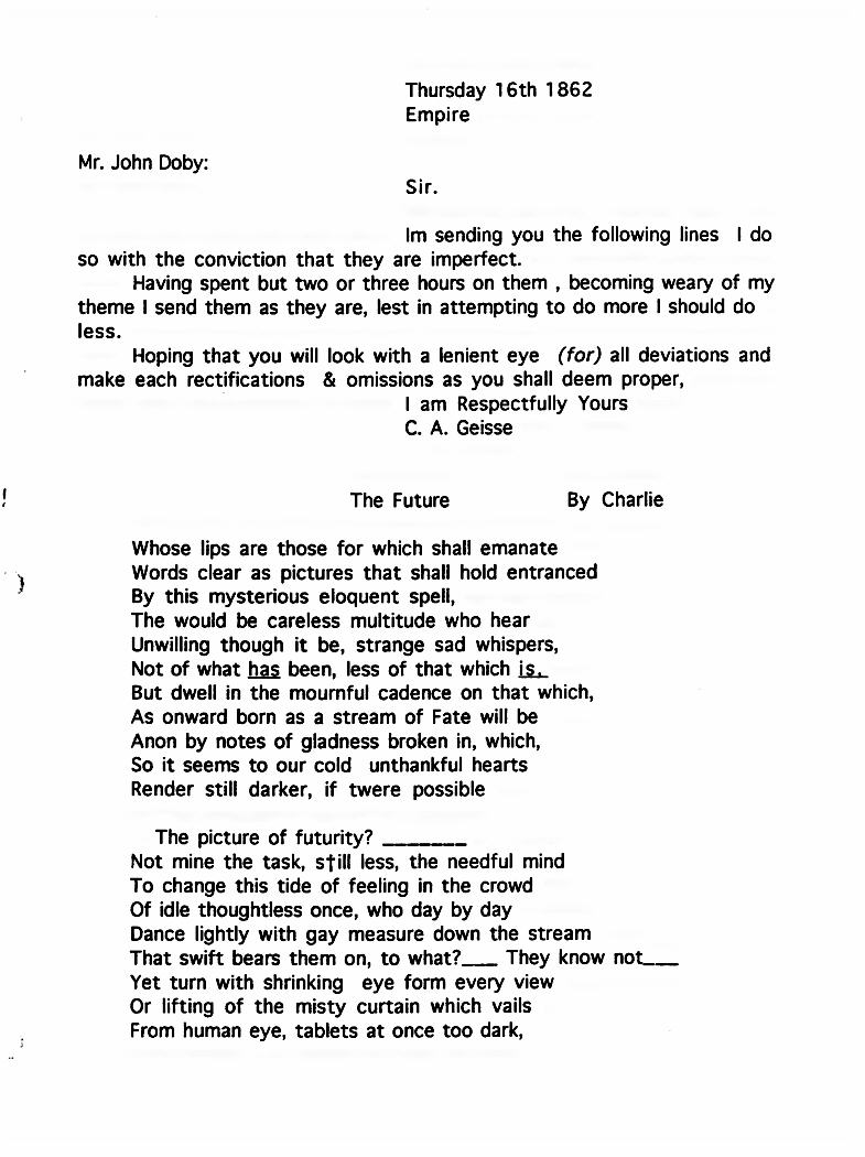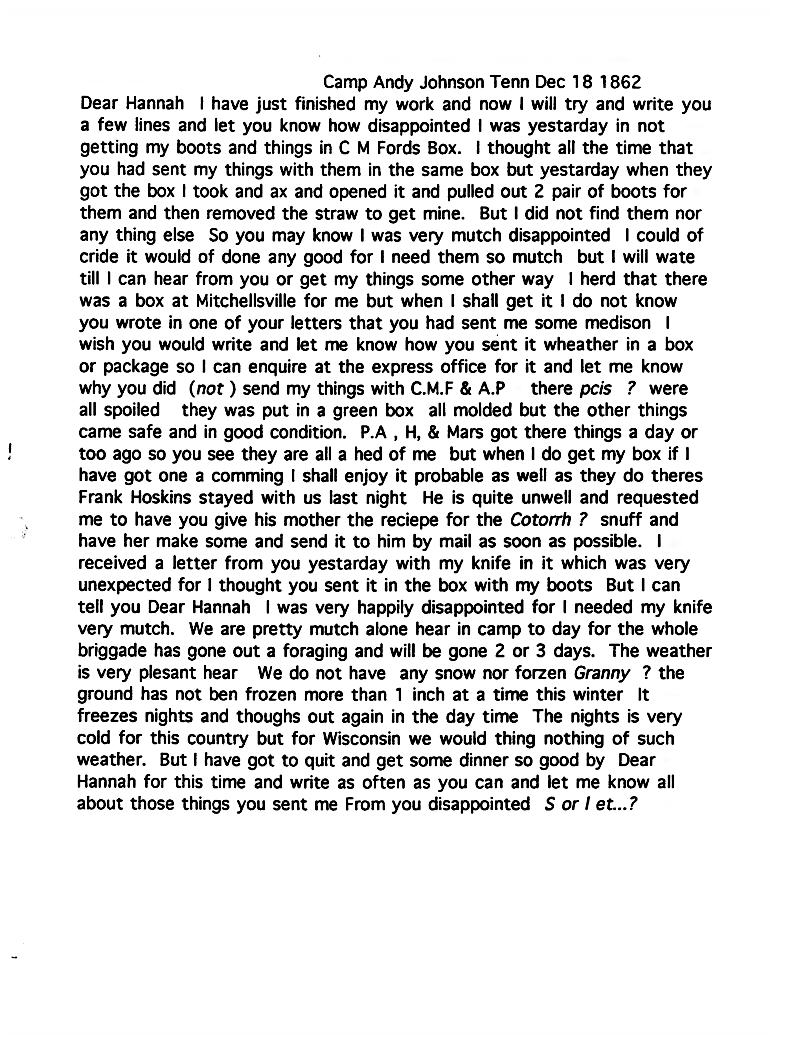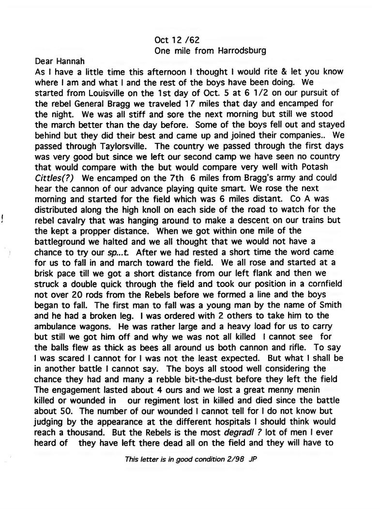 Page 1, Sept. 8, 1862 Page 2, Sept. 14, 1862 Page 3, Sept. 15, 1862 Page 4, Sept. 16, 1862 Page 5, Sept. 22, 1862 Page 6, Sept. 24, 1862 Page 7, Sept. 29, 1862 Page 8, Oct. 10, 1862 Page 9, Oct. 12, 1862 Page 10, Oct. 12, 1862 Page 11, Oct. 16, 1862 Page 12, Oct. 22, 1862 Page 13, Oct. 22, 1862 Page 14, undated Page 15, Oct. 27, 1862 Page 16, Oct. 27, 1862 Page 17, Nov. 8, 1862 Page 18, Nov. 3, 1862 Page 19, Nov. 5, 1862 Page 21, Nov. 6, 1862 Page 22, Nov. 6, 1862 Page 23, Nov. 9, 1862 Page 24, Nov. 11, 1862 Page 25, Nov. 12, 1862 Page 26, Nov. 17, 1862 Page 27, Nov. 2?, 1862 Page 28, Nov. 30, 1862 Page 29, Nov. 30, 1862 Page 30, Dec. 1, 1862 Page 31, Dec. 2, 1862 Page 32, Dec. 6, 1862 Page 33, Dec. 6, 1862 Page 34, Dec. 11, 1862 Page 35, Dec. 11, 1862 Page 36, Dec. 18, 1862 Page 37, Dec. 21, 1862 Page 38, Dec. 21, 1862 Page 39, Dec. 23, 1862 Page 40, Dec. 23, 1862 Page 41, Page 42, |