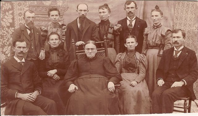 Martha Clark Foster (center) with her children 1903: Bela is seated left, next to him is Angeline, next seated is Martha, then Olive (?), and Sela (?)