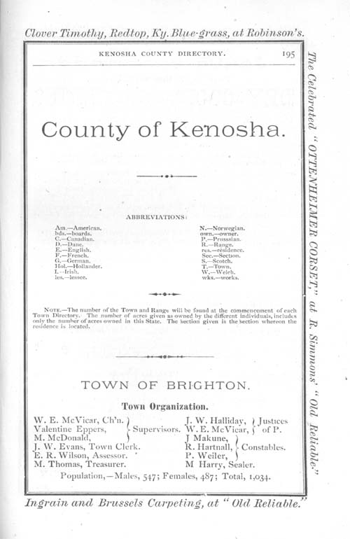 1875 Kenosha County WI Directory