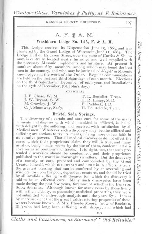 1875 Kenosha County WI Directory