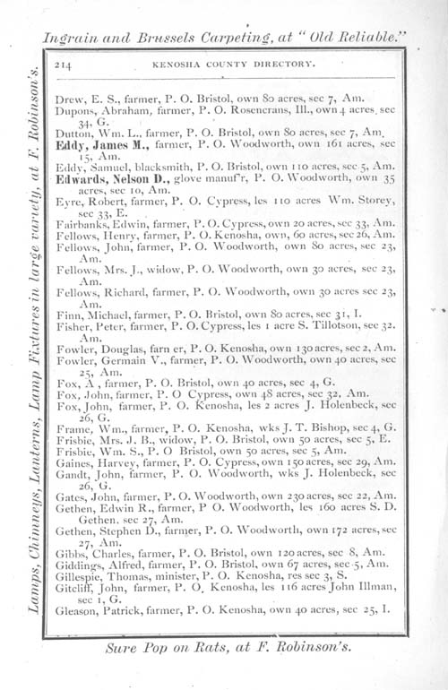 1875 Kenosha County WI Directory