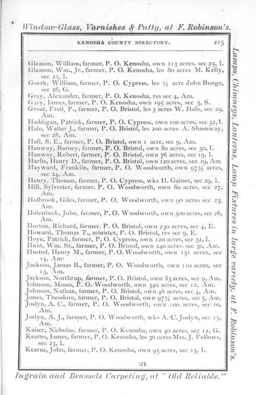 1875 Kenosha County WI Directory