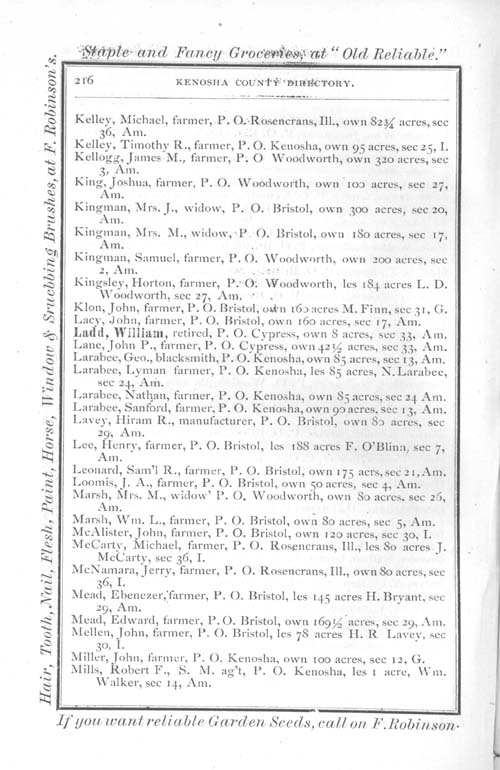 1875 Kenosha County WI Directory