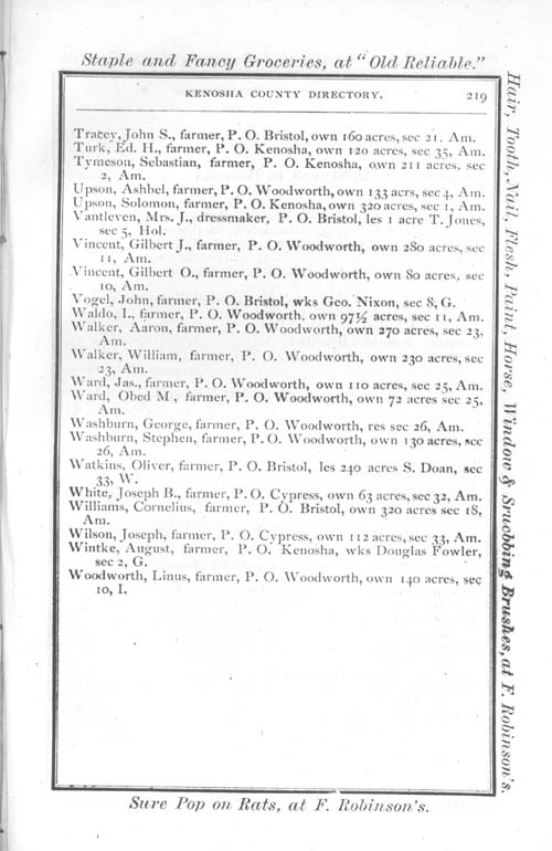 1875 Kenosha County WI Directory