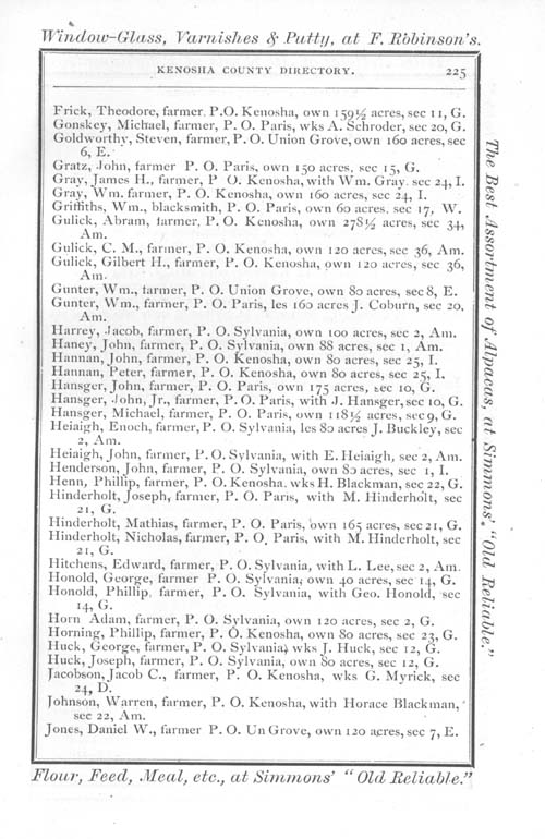 1875 Kenosha County WI Directory