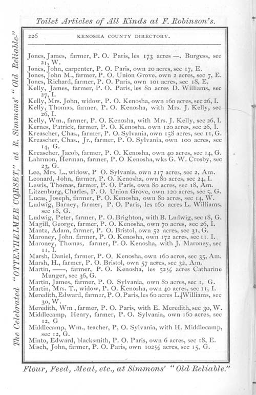 1875 Kenosha County WI Directory