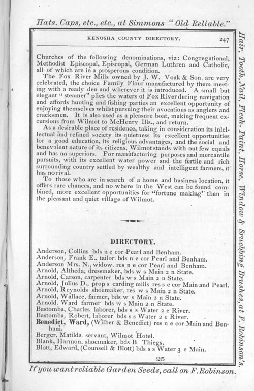 1875 Kenosha County WI Directory