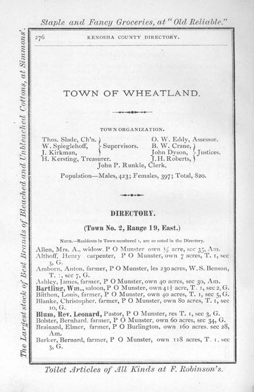 1875 Kenosha County WI Directory