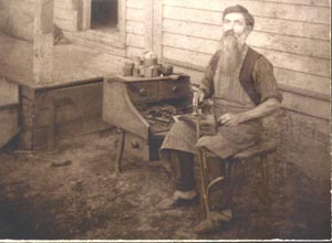 ![]() John George Bienemann at his home and shoemaking workshop, 306 Lake Avenue, Kenosha, circa 1900. This photo was submitted by Kathe
