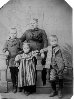 ![]() Submitted by Ann Pape. Photo estimated to be taken in 1906. People in photo are Trena Andersen, mother; Oscar, the older son in the picture; younger son Henry and daughter Emma Andersen. Older brothers Julius, James, Charles are not pictured here. Oscar lived in Racine, Wisconsin. Henry lived in Kenosha County. Emma Andersen married Soren Nielsen lived in Racine Area. |