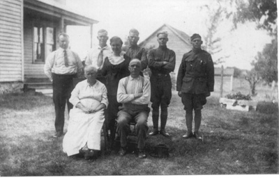 Submitted by Ann Pape. Estimated time of photo World War One. Parents Trena Hansen Andersen and Christ Andersen are seated. From left to right standing: Julius, Charles, Henry, Oscar, and James. Ann believes this photo was taken in Kenosha County. |
