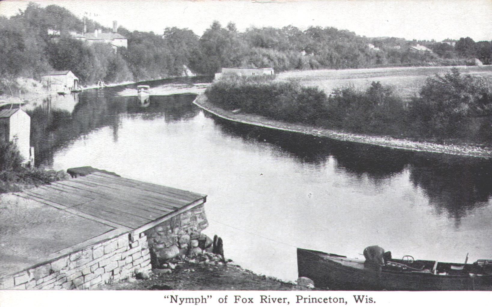 "Nymph", a boat on the Fox River Princeton Wisconsin postcard, added December 2002 from Jean B's collection.