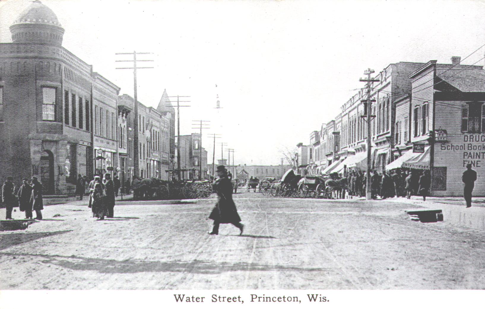 Water Street, Princeton, Wis. a Princeton Wisconsin postcard, added December 2002 from Jean B's collection.