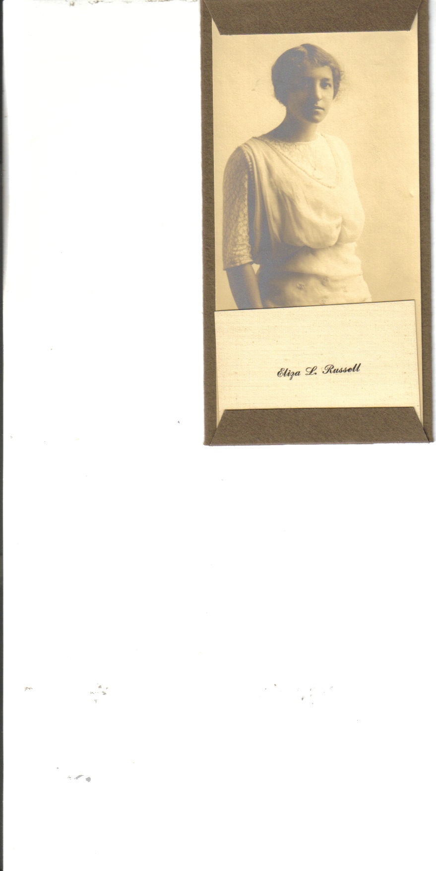 postcard sent to Miss Eliza Russell of Roland Kohler reads "Dear Friend, I send you my picture and best wishes for a