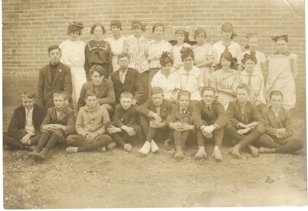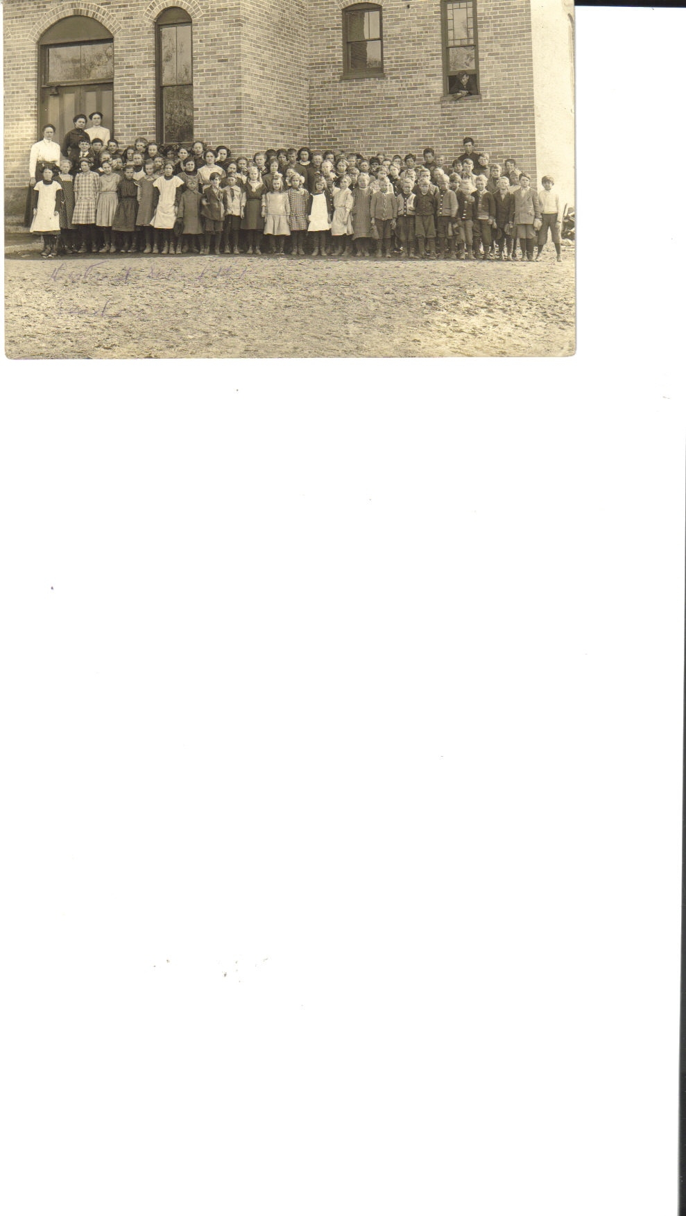 This picture post card had no message however my best guess is the 3rd student from the left and in back would be my mother Edna D Fenske who would have been 10 yrs old