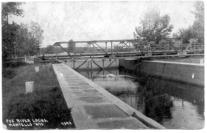 Fox River Lock at Montello Wisconsin, ca 1922, from an old postcard.
