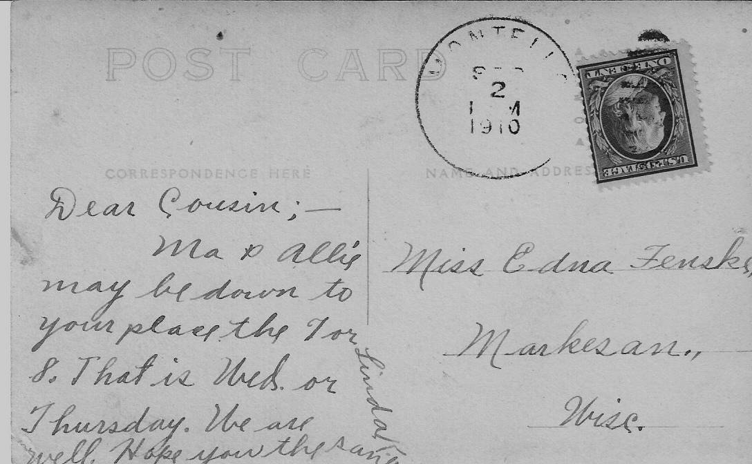 Edna D Fenske. Linda was related to the David Wilde family of Ripon in Fond Du Lac Co. Sent by Eugene Gerbitz, from his mother's collection.