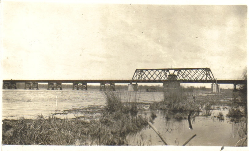 The bridge was built in 1911. The photo of the crew building the bridge of Chicago northwestern over Buffalo Lake was