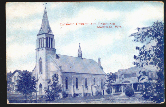 Montello Catholic Church circa 1908, from an old postcard.