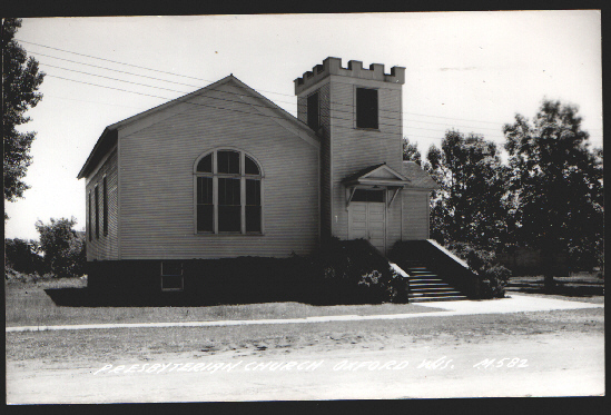 Oxford WI, Presbyterian Church circa 1940, from an old postcard.