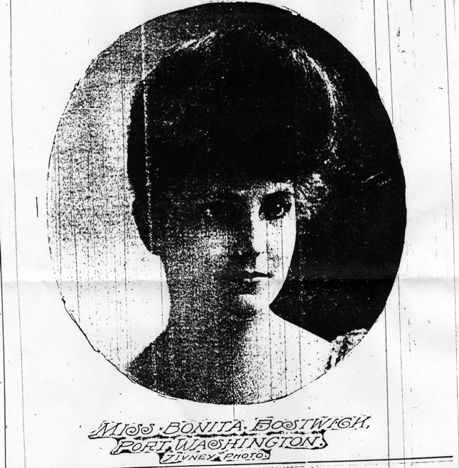 "The Star today prints the portrait of Miss Bonita Bostwock, which appeared April 14th in the Illustrated Sunday Magazine of the Milwaukee Sentinel among the pictures of a number of beautiful Wisconsin women which that paper has received in the quest which it is conducting for the purpose of finding the state's greatest beauty. The people of Port Washington are to be congratulated upon having among their representives in the quest so beautiful a young woman as Miss Bostwick and whatever the outcome may be they may well feel proud that this city's reputation as the home of lovely women has been so amply demonstrated.