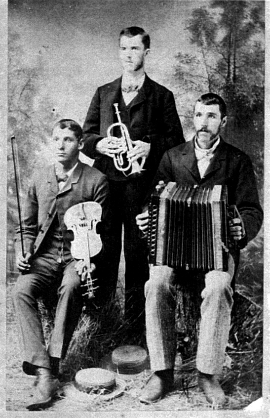 A picture of Conrad Miller (with the accordion). He was the younger brother of contributer's great grandmother Annie Miller. He was born 3/1/1855 in Saukville. He lived with his brothers and sisters on his mother's farm on Birchwood Road until 1882, so I am sure the picture was taken somewhere in the area.