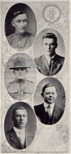 Albert L. (picture 3) Spring Valley, Wis. Joined the colors Sept. 4, 1918, at Ellsworth, Wis. Trained at Camp Grant, Ill., and at Camp Hancock, Ga. Died from pneumonia Oct. 5, 1918. (brother Robert above) |