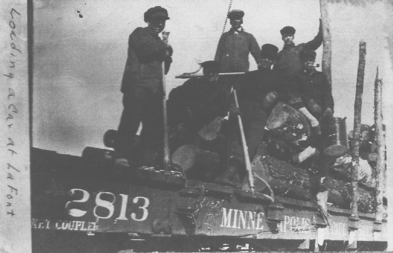| Loading a Railroad Car | Log Railroad Car | Hewing Logs | Lafont Loading Sign |