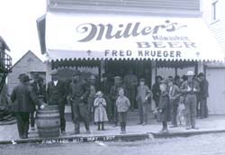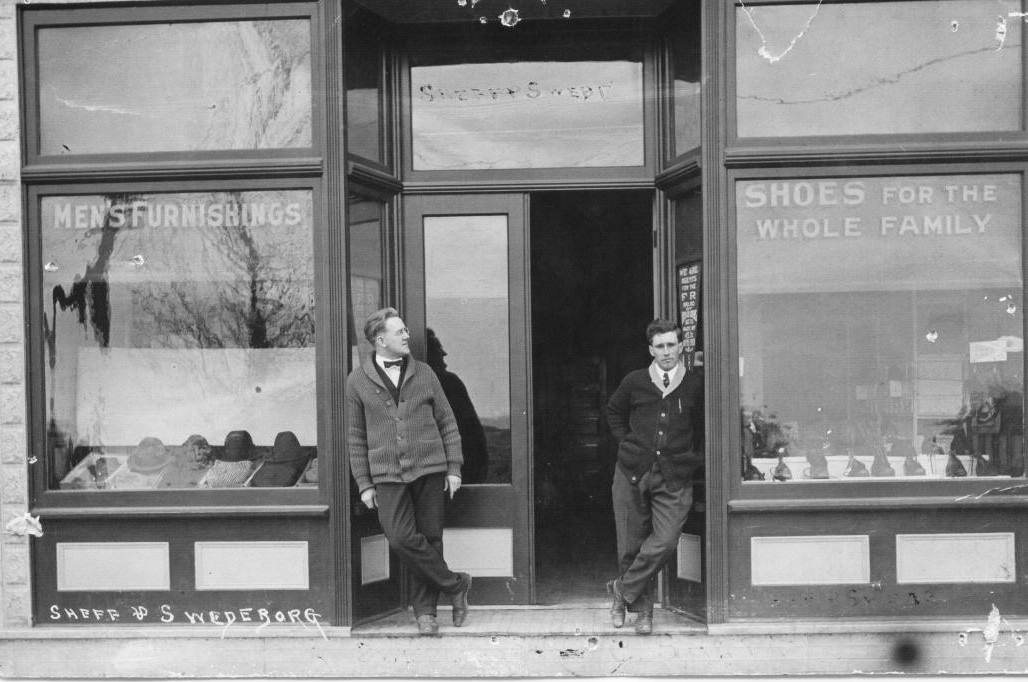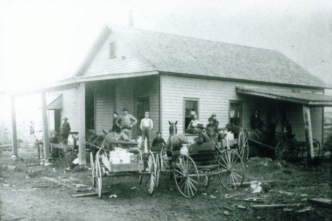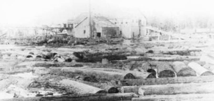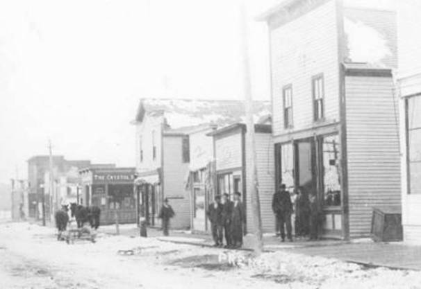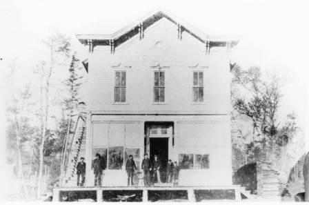 About the same time they built the store. Being the first store, it controlled the bulk of the trade, and its business increased to such an extent that in 1891 it was enlarged to more than twice its former size. It is today a model store in every respect and incandescent lamps and the stock comprises absolutely everything in the line of general merchandise. The next buildings to be erected were seven or eight dwelling houses that are now occupied by Emerson Brothers. Before snow flew the dam had been completed and when winter set in logging operations were vigorously prosecuted under the direction of Mr. Lewis. Mr. Prentice took charge of the clearing and building, while Mr. Gallett looked after the business interests of the company. As soon as the ice in the pond broke the following spring, the mill, which in the meantime had been completed, was started, with George Morrow as foreman and Grant VanDusen as timekeeper. Joe Rabdeau was in charge of the shingle mill and Dick Burritt of the lath mill; Mel Robbins presided at the boarding house; Charles Alverson kept the books and John Turner conducted the store. The Wisconsin Central Railroad company was represented by Joseph Wilbur and the Soo had not been heard of.