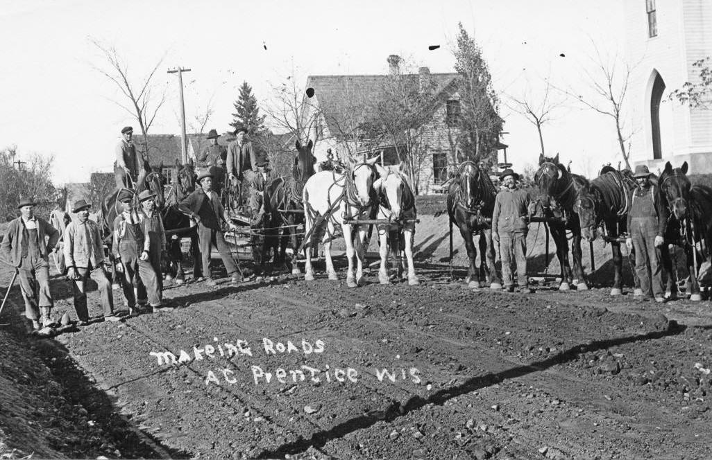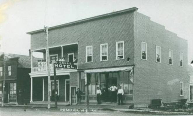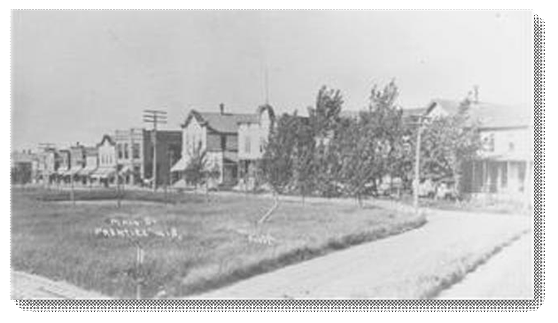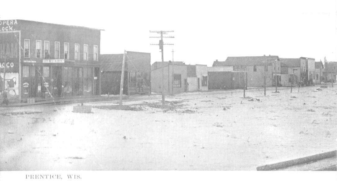 Early in the summer of 1886, there began to be rumors afloat of a new railroad which was coming from the west, and when in the fall G. W. Carrington with a corps of civil engineers came here and started through the woods in search of a location for the right-of-way, the rumors became a certainty, the seeds were sown which were soon to take root, bud and blossom into an ear of prosperity hitherto undreamed of in Prentice. Corner lots were now at a premium and before spring Prentice real estate was selling by the front foot. The population now began to double every week—some weeks—hotels grew up like mushrooms, and when the road struck Prentice in the spring of 1887 she enjoyed the distinction of being the liveliest and wickedest town in all Northern Wisconsin. Up to this time the history of Prentice and of the Jump River Lumber company had been identical, but now the town, which had hitherto grown up under the wise policy and fostering care of the company, broke loose from all restraint and assumed, as it were, among the powers of earth a separate and equal station.