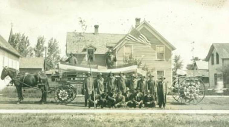 In the summer of 1882 the Jump River Lumber company was incorporated at Portage, Wis., and consisted of the following gentlemen: A. Prentice, M. T. Alverson, O. D. Van Dusen, C. R. Gallett, L. L. Breese and F. H. Lewis. Early in the fall Messrs. Prentice and Van Dusen came up from Dorchester on the morning passenger with orders from the railroad company to let them off in the morning at the Jump river bridge and stop for them on the way down in the afternoon. They skirmished around all day in the brush and picked out a location for the dam and mill. They brought lunch with them and ate it on the bridge. Later in the fall, Messrs. Gallett, Lewis and Prentice came up on a freight, with a carload of lumber from Dorchester. The freight stopped while they threw off the lumber, there being no sidetracks here in those days. They had tools, provisions, carpenters and workmen, and erected on the side of the track a cook shanty, which is the building now used by the Jump River lumber company as a warehouse. They went to work clearing the site for the mill and built the “boarding house,” which has since been enlarged and improved and is now so ably conducted by Landlord Myers under the name of the Jump River House and which is spoken of by the traveling public as one of the best hotels on the line.