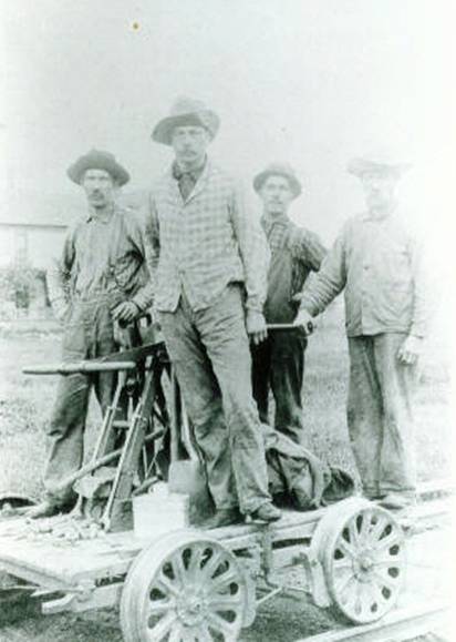 Prentice Railroad Section Crew L-R: Chas Peterson, Chas Haag, Sebastian Keller, Peter Bro.