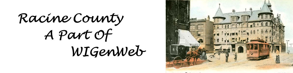 My name is Rebecca Maloney and I am the temporary county coordinator for Racine County. If you have any corrections or additions for this site please email me. We would like to thank ALL of our previous County Coordinators and Look up Volunteers for all of the work you put into these pages. Our volunteers are what make this project a success! THANK YOU!!
