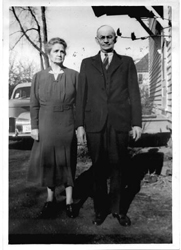 Garage Sale Rescue John Hewes writes:I purchased an old 5x7 frame which turned out to contain both of these pictures. I purchased them on County KR, which is the road separating Racine and Kenosha counties. The oldest of the pictures is of a young woman, possibly high school age. This picture is the one that originally went with the frame. I know this because on the back of the frame, the photographer wrote, "No. 3 C. Woodward". I believe this may be the name of the woman. The frame was originally attached to two other frames, one on each side. These other frames probably contained pictures of the woman's siblings. The older picture is not professional. I date it in the 1930's due to the vehicle in the background. The older woman standing with the older man, is probably the same woman as in the earlier picture. They both have a prominent cleft in the chin. That would also explain why both pictures were kept in the same frame. If you think the photos of these people are your ancestors, contact: John Hewes |