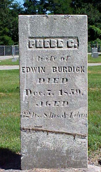 | ----- | Oct. 16, 1861 | Wife of Lucius H. BURDICK; with footstone "J.E.B." plot 75 |