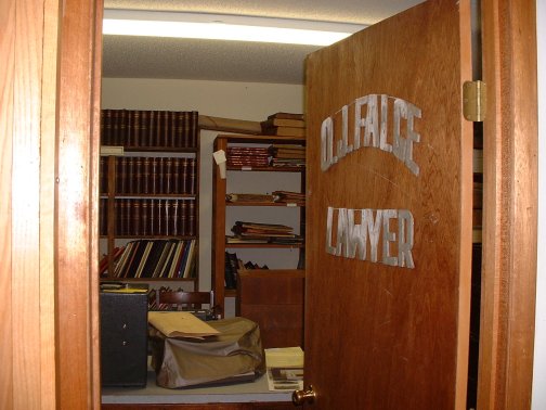 Welcome to the O. J. Falge Law Office. This law office has been reconstructed in a room of the newest exhibition building.