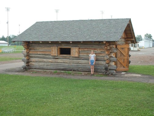 Welcome to the Logging Camp Bunkhouse. This photo shows the exterior of the bunkhouse. The young lady standing in front of the bunkhouse is my niece.