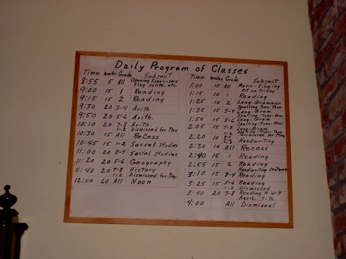 An organ sits at the front of the room. Perhaps the teacher played music as the students sang songs.