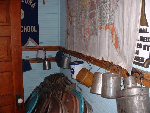 As you turn to the right, you can see where students hung up their lunch pails in the entry way.