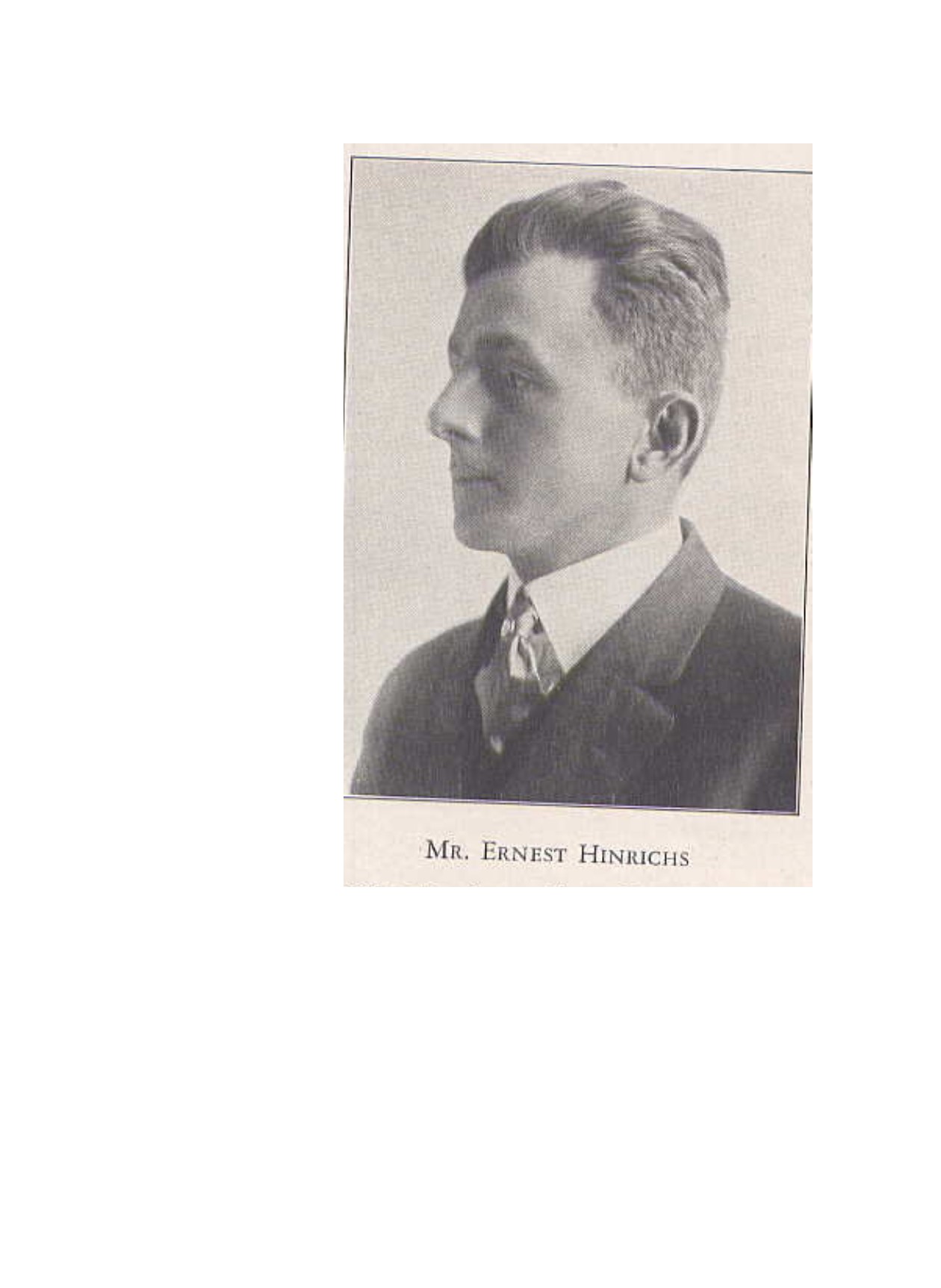 MR. ERNEST HINRICHS. A native of the town of Reedsburg, the man whose name heads this sketch is one of the local men who has gone abroad in the world and won for himself a singular success. One of Wisconsin's foremost Dairy Cow Testers, our subject is now with the Husbandry Department of Cornell University, N.Y., with which he is now completing a five year contract.