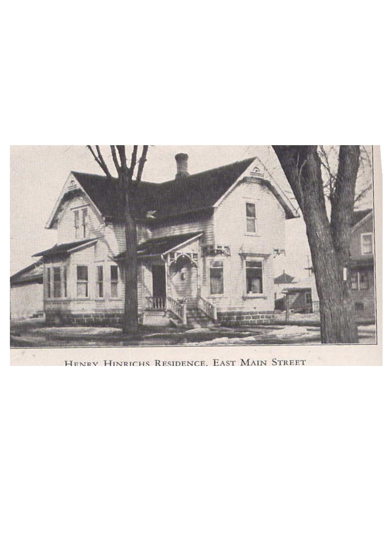 Being but fourteen years of age when he came to America, Henry HINRICHS grew to manhood in the town of Reedsburg, enduring the hardships of frontier life. He was married to Lettie HINTZMAN. She was born Feb. 1, 1862, in the town of Kildare, Juneau Co., Wis., daughter of William and Anna (KOEPKE) HINTZMAN. Her father was born in Pommern, Germany, Feb. 29, 1828; he was married in 1854; Anna (KOEPKE) HINTZMAN was born Nov. 26, 1825. Mr. and Mrs. HINTZMAN came to the United States in 1854, settling in Kildare, Juneau Co., Wis., when that county was a wilderness. Mr. HINTZMAN served in the Union Army during the Civil War. He died April 29, 1886; Mrs. HINTZMAN, June 14, 1909. Upon their marriage Mr. and Mrs. Henry HINRICHS assumed managership of the Reedsburg farm, which they purchased in 1882. They enjoyed considerable prosperity during their active years, and now, since Aug. 17, 1926, have resided in peaceful retirement at their residence at 743 E. Main St.