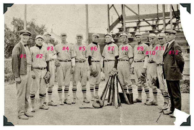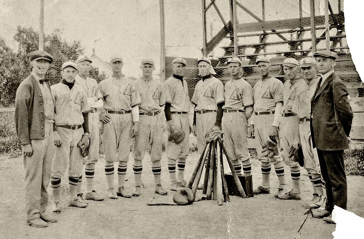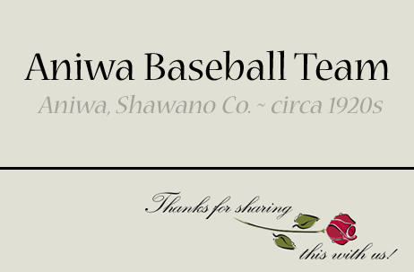 ~ ANIWA BASEBALL TEAM circa 1920s... ~ Many thanks to Kathy Merzouk for sharing this great photograph with us. Click on it for the larger picture... Wisconsinites have always LOVED sports... Back in the day, before Vince & the Pack, Wisconsin boasted statewide organized TOWN BASEBALL TEAMS as far back as 1901. Not only was baseball the national past-time, it was sometimes the only game in town in most instances... and we loved baseball! Pops & his brothers played on several teams in Northern Wisconsin and long after the uniforms were frayed and retired to the back shed, the memories lived on. It's changed over the years, but young (and not so young!) guys still get together and have a great time. Kathy has identified her grandfather, Elvwyn Peterson, as the second from the right (our # 11) and we're hoping to identify the other 11 members of the team as well. If you know or recognize any of these dashing (striking??) young men, email me and we'll update the page!